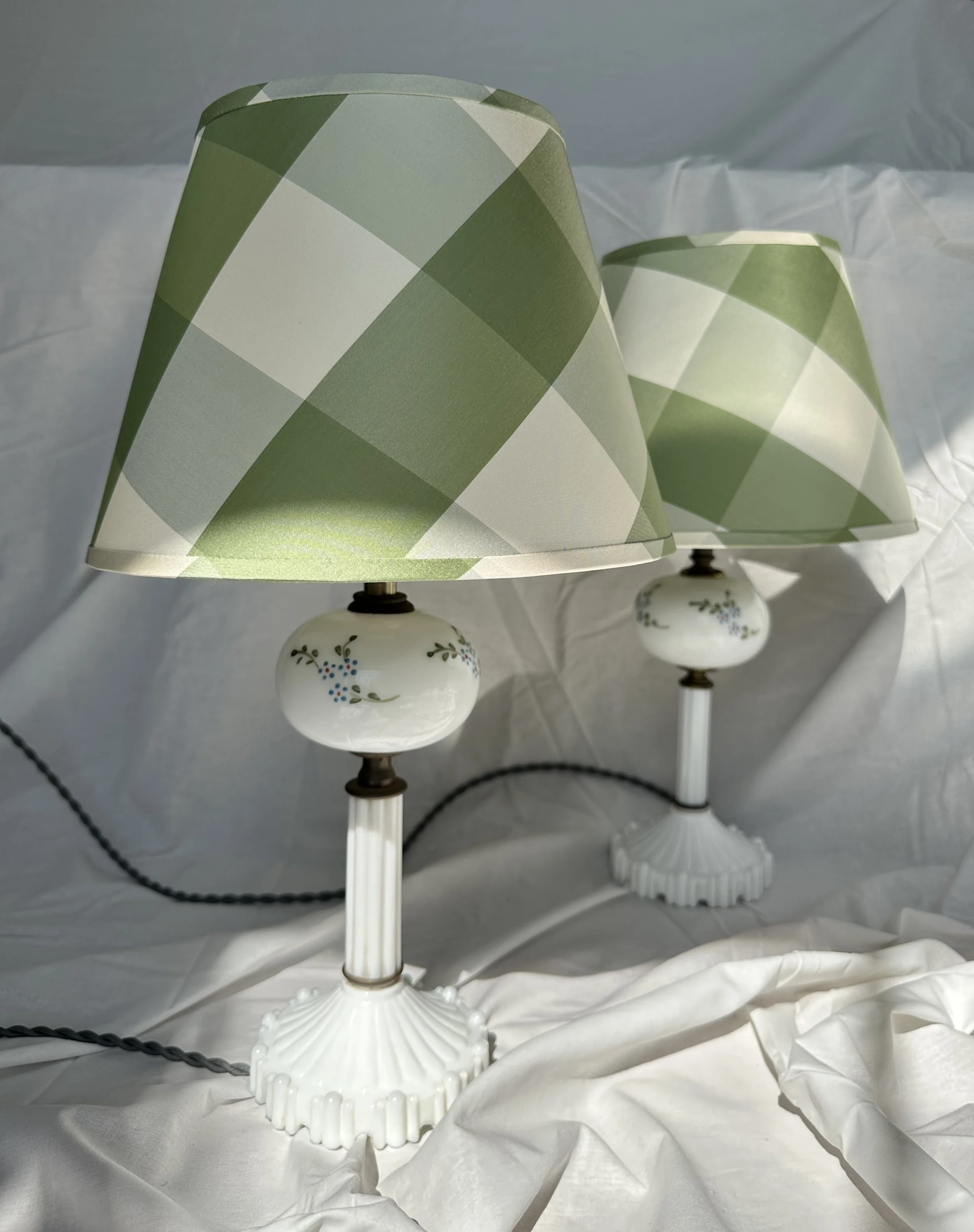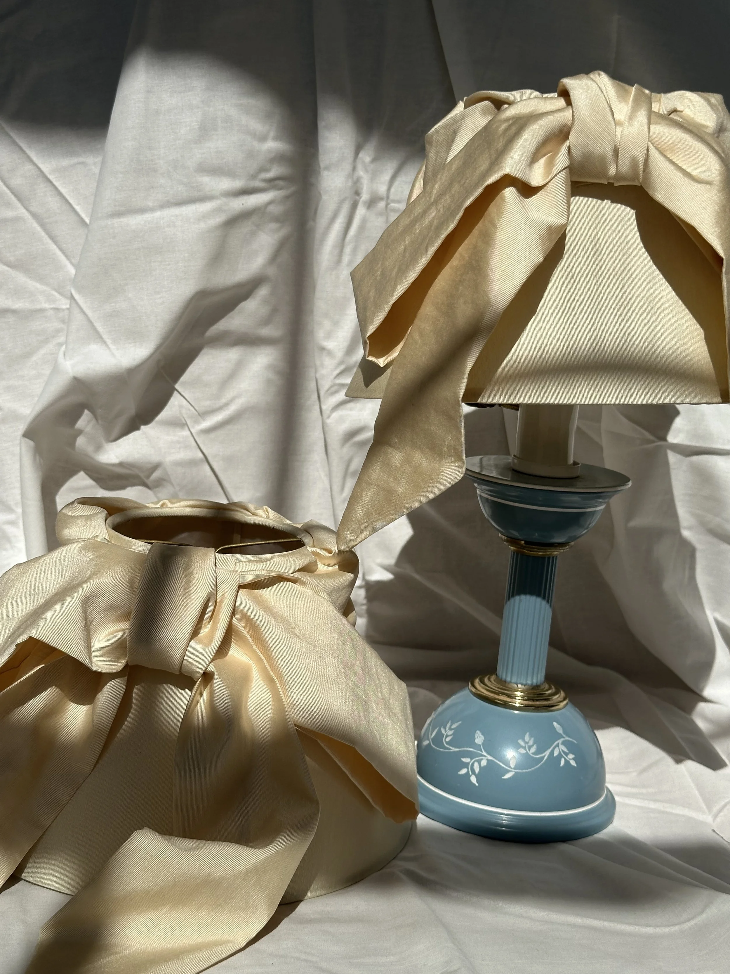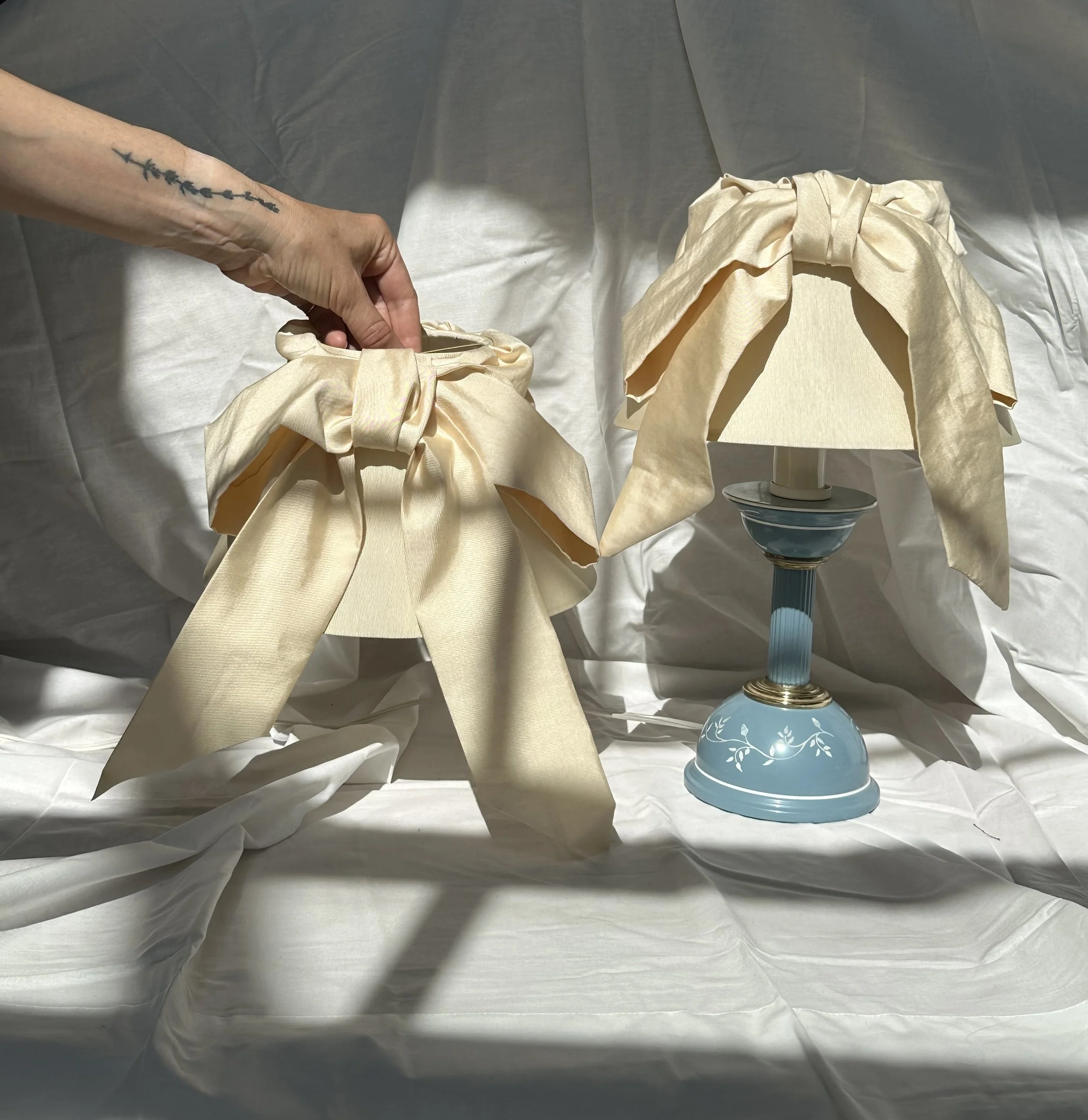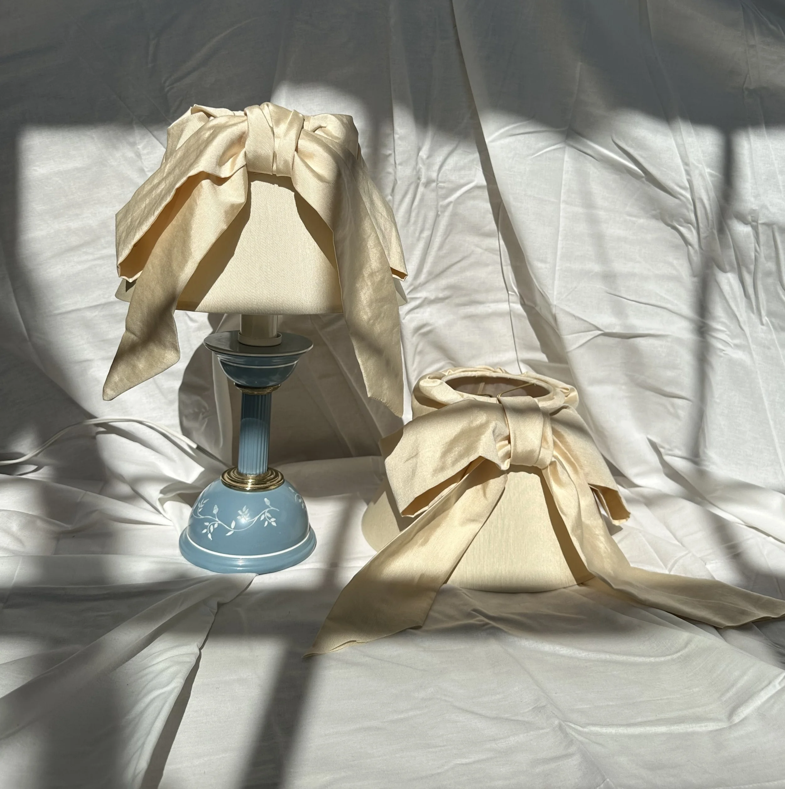 We love to work with materials that are meaningful to our clients. Maybe you have heirloom linens that would be better as pillow shams or lampshades. OR maybe you just really want a certain color Ribbon Empire Shade for your living room. we love to make customs and work directly with you. Just send us an email to start!